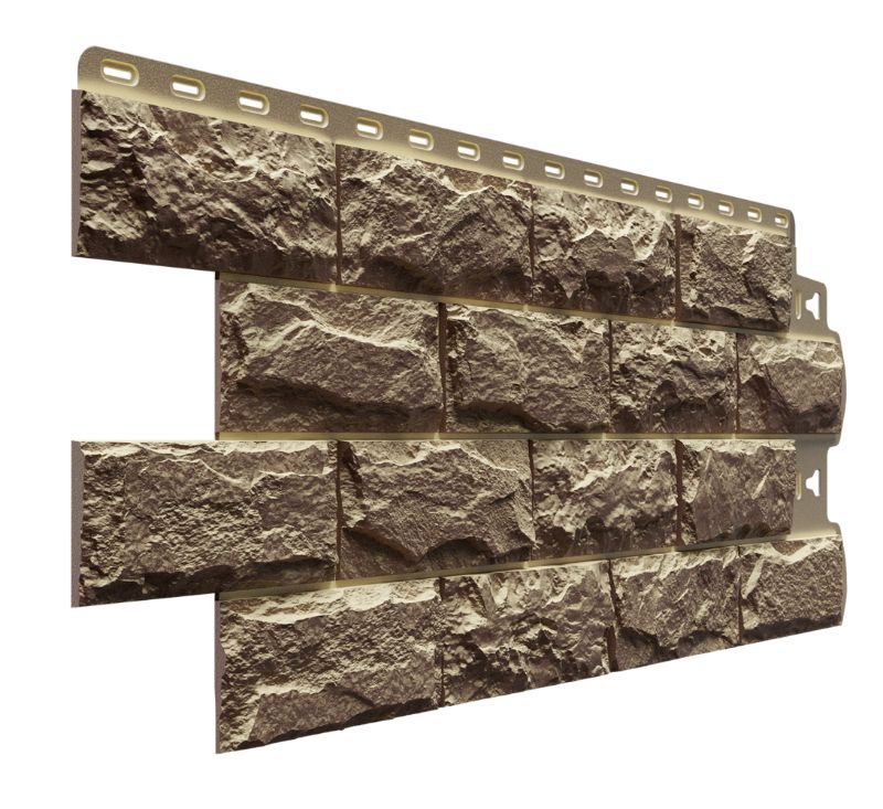 Фасадные панели оттенка «Шатель» неотличимы на вид от натуральной скальной породы. Высокотехнологичная окраска фактурного прочного материала позволяет достигнуть максимальной реалистичности.