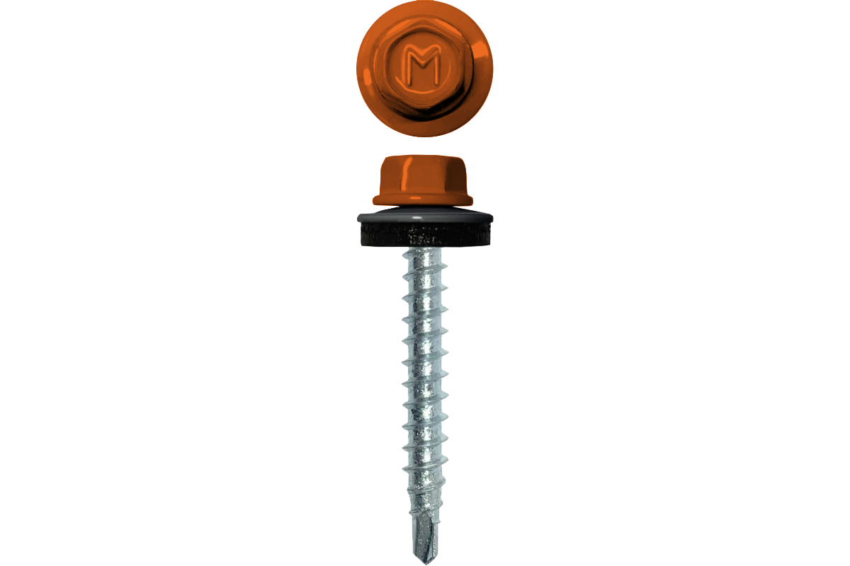 Специальная металлическая шайба с ЕРDМ - уплотнителем обеспечивает плотное прилегание профилированного металла (кровли) к деревянной обрешетке, а также препятствует попаданию влаги.