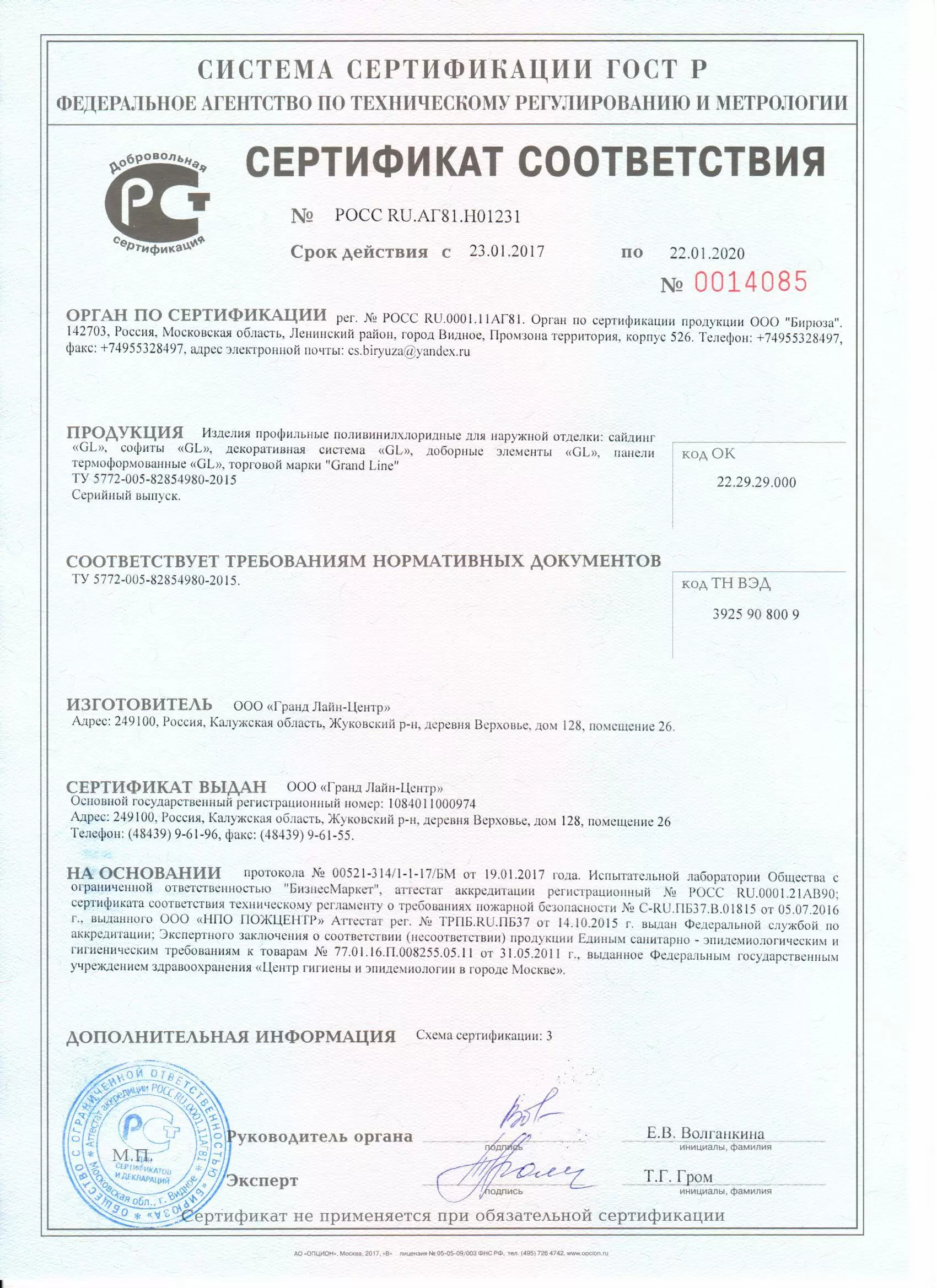 Подтвержденное сертификатами и действующими ГОСТ