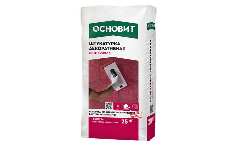 Штукатурка декоративная ОСНОВИТ ЭКСТЕРВЭЛЛ "моделируемая" применяется в СФТК с жестким креплением утеплителя, придающий системе внешнюю форму и внешний вид, а также обеспечивающий защиту системы от неблагоприятных факторов воздействия окружающей среды. Также применяется для декорирования фасадов и внутренней отделки. Высокая паропроницаемость, легкость и удобство нанесения.